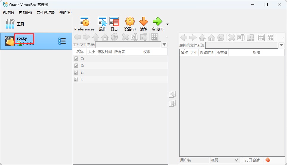 当我们弄好一个虚拟机的时候都会给这个虚拟机去一个名字,实例现在的取名是红框标注的 rocky。这个名字要记住,接下来的教程有用。